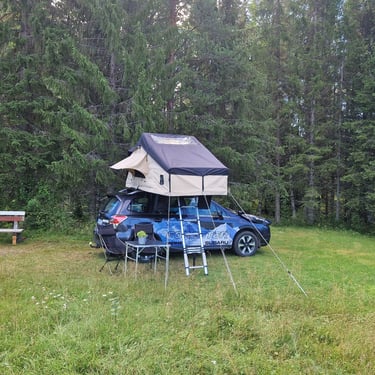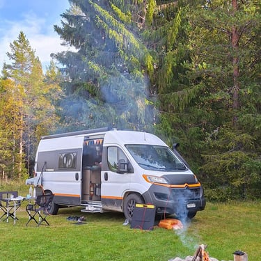 Abseits vom Campingplatz-Trubel, auf einer großen Lichtung mitten im Wald, findet ihr bei uns eine kleine Zahl an Stellplätzen, ideal für Overlander, Wohnkabinen-Abenteurer und alle, die ihr Zuhause auf vier Rädern dabeihaben.
