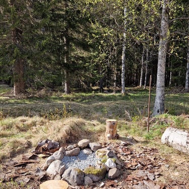 Für alle, die das Abenteuer lieben: Vor dem Zelt gibt es eine Feuerstelle, an der du unter freiem Himmel grillieren kannst. Geniesse deine Mahlzeiten umgeben von Wald, Stille und knisternden Flammen.